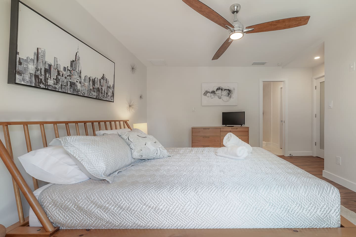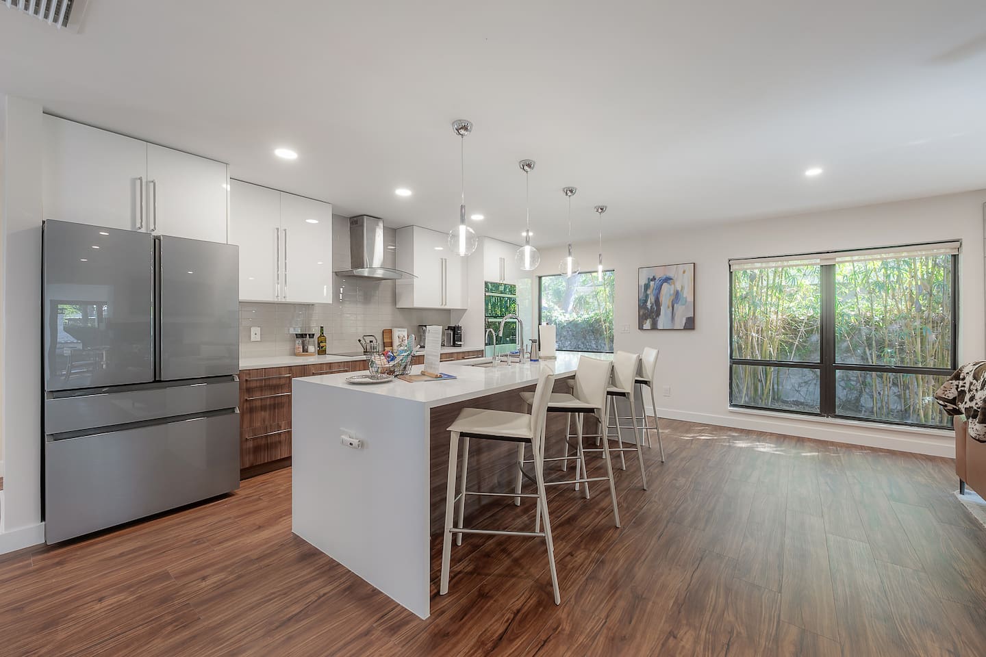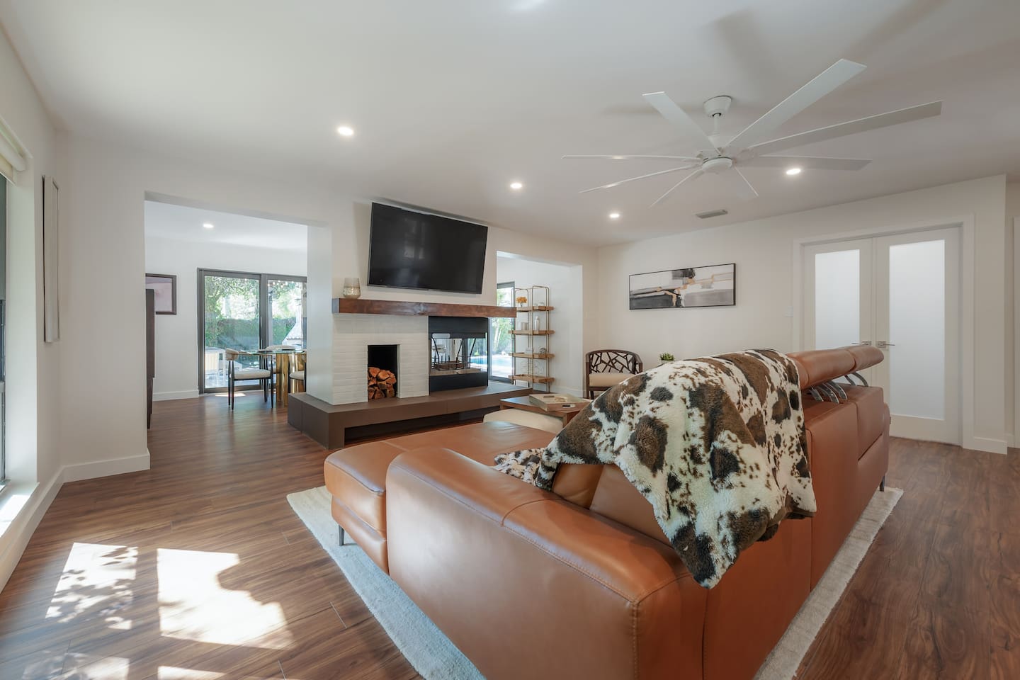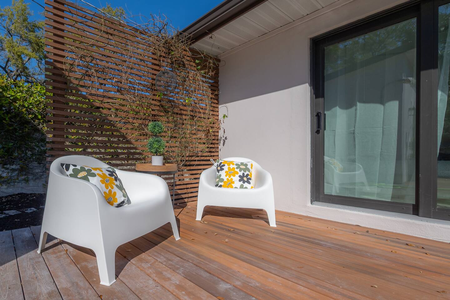 Experience Villa Bella Vita, a one-of-a-kind executive villa in Tampa. This 3BR/3BA home blends luxury and comfort with a heated pool, outdoor fireplace, and curated designer furnishings from RH, West Elm, and more. Ideal for couples, corporate stays, or upscale retreats. The Space ✔ 3 Bedrooms | 3 En-Suite Baths | All with smart Tv's ✔ 1 King (Master) | 2 Queens (Guest Rooms) ✔ 2 Twin Memory Foam Folding Beds ✔ TVs in every bedroom ✔ Thermador kitchen + giant chef’s island ✔ Hotel-grade linens & luxury finishes Outdoor Living ✔ Heated pool with Ledge Loungers ✔ Private fenced yard ✔ Weber Genesis Grill with Gas ✔ Outdoor fireplace, Pergola, & resort-style seating ✔ Optional add on use of Cabana with extra Bed and Bath Please note: Guest house not included. If you need a 4th bedroom + bath, inquire about booking the full property. The guest house is not rented separately so if you book there will not be other guests occupying or sharing space. Indoor fireplace is decorative only. Not child-friendly. Why guests love it 👨👩👧 Single-level home (no stairs), fenced yard, Weber Grill minutes from everything! 💻 Digital Nomads: fast Wi-Fi, Ethernet, dedicated workspace, quiet neighborhood yet close to downtown. 💕 Couples: king suite, private pool, upscale Mid century modern vibe—perfect for a romantic escape. Location highlights 15 min → Busch Gardens & Adventure Island 10 min → Steinbrenner Field Raymond James Stadium Amalie Arena (Now Benchmark International Arena) 15 min → USF & Moffitt Cancer Center 10 min → Downtown Tampa, Riverwalk, Armature Works 5 min → Tampa International Airport 30–40 min → Beaches & Clearwater