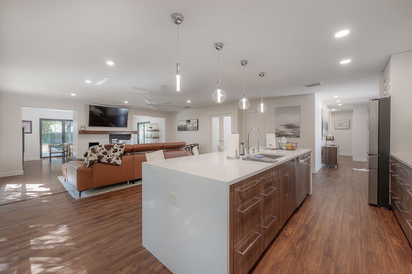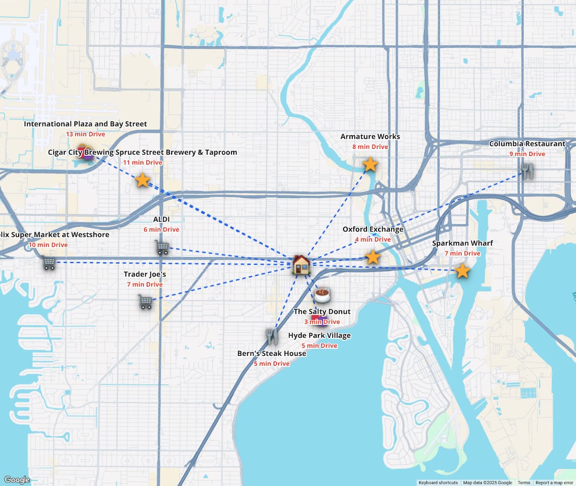 Welcome to Villa Bella Vita, Tampa’s ultimate executive retreat. This 3BR/3BA luxury home features a heated pool, outdoor fireplace, and designer interiors—perfect for couples, executives, or a stylish getaway. Nestled in the quiet Westshore District, you’ll be minutes from shopping, dining, and the bay. Each bedroom has a private en-suite bath, with extra memory foam beds for flexibility. Resort vibes meet modern comfort here!