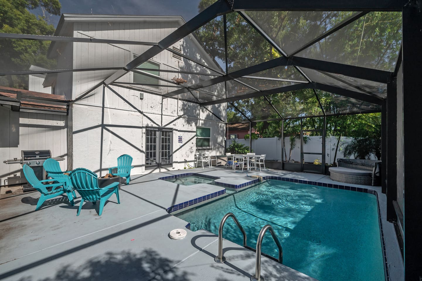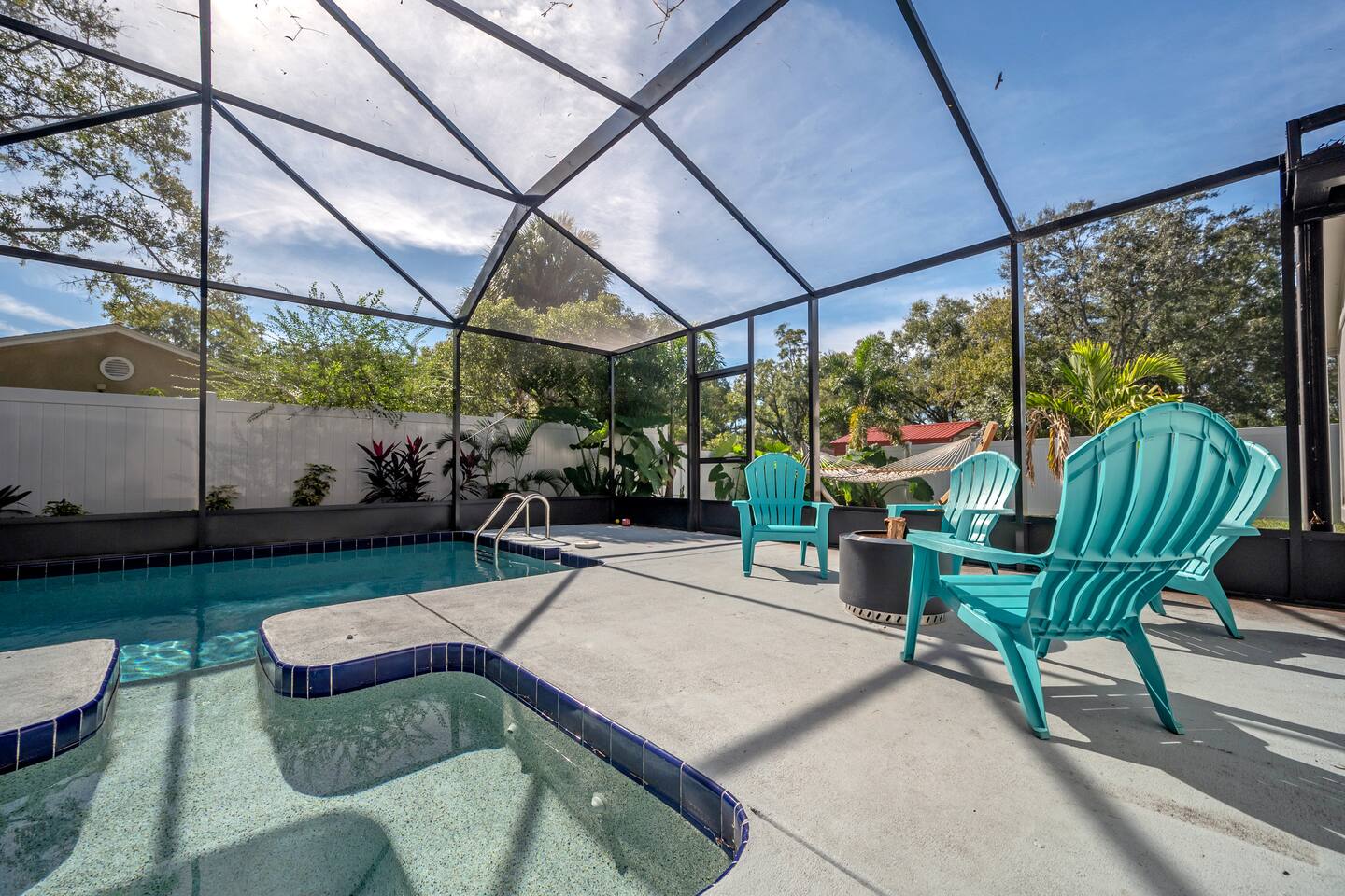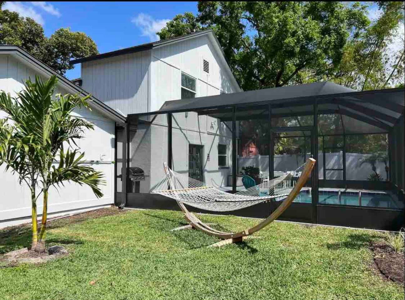 Welcome to Central Perk—your "Friends" and family Tampa retreat! Just 1 block from the Zoo, 1 mile to Seminole Heights’ best restaurants & breweries, and 10 minutes to Busch Gardens. Relax in the heated screened pool, sway in the hammock, or fire up the grill. Newly furnished with a West Elm sectional, vaulted ceilings, and lush backyard vibes. Perfect for families & groups! LARGE GROUPS-check out our other properties nearby within 1-3 blocks! Managed by: FlipMyBnB Vacation Homes