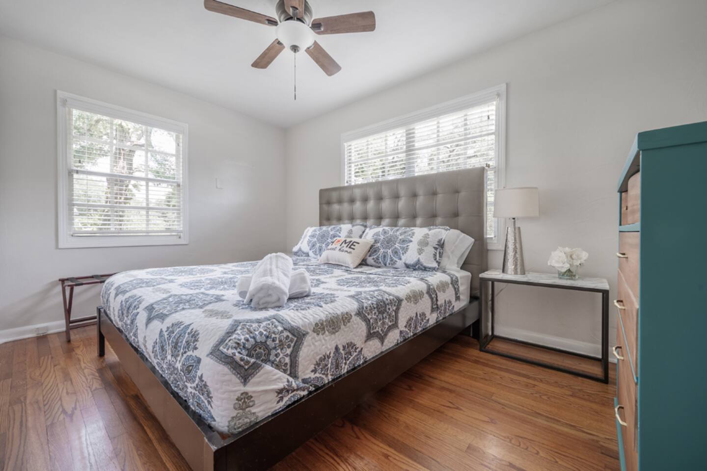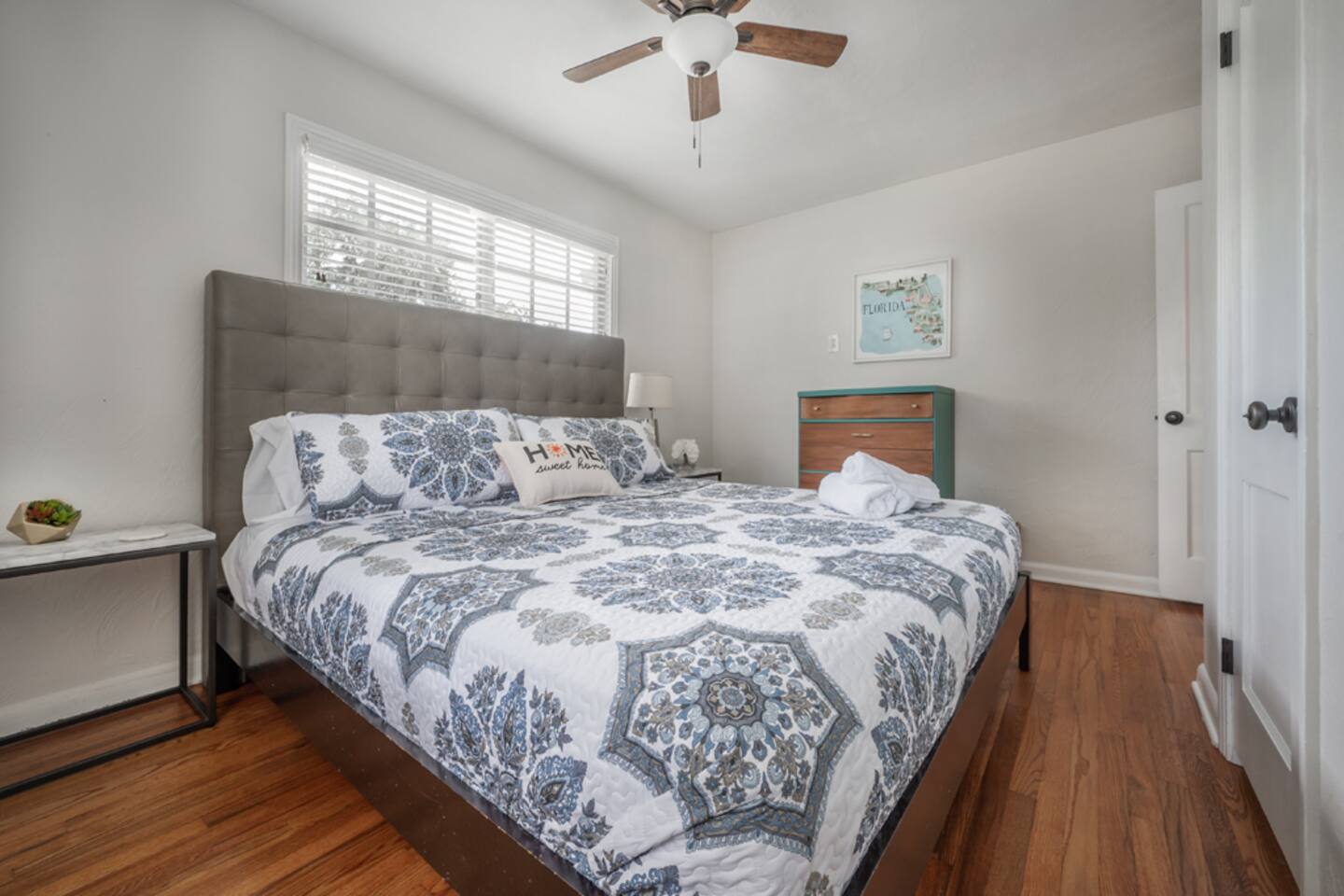 This 3 bedroom 1 bath hilltop hideaway is the perfect spot for a base camp for adventure or just a relaxing This thoughtfully designed 3BR/1BA home offers cozy living with modern touches: Bedding configuration: 1 King Bed — Master Bedroom 1 Queen Bed — Back Bedroom 2 Twin Beds — Daybed + Trundle in Home Office/Bedroom Highlights: Heated pool (kept ~85–87°, weather permitting) Spacious living + dining with barn doors for flexible open layout TVs in the living room and ALL bedrooms! Dedicated home office space for remote work Note: The driveway has a steep incline — fine for trucks, SUVs, and most cars, but low-riding vehicles should take extra care. Why guests love it 👨👩👧 Families: single-level home (no stairs), fenced yard, pack ’n play, kids’ dinnerware, minutes from Busch Gardens , downtown & ZooTampa. 💻 Digital Nomads: fast Wi-Fi, Ethernet, dedicated workspace, quiet neighborhood yet close to downtown. 💕 Couples: private Heated, cozy vibe—perfect for a romantic escape or groups. Location highlights 10 min → Busch Gardens & Adventure Island 10 min → Steinbrenner Field Raymond James Stadium Amalie Arena (Now Benchmark International Arena) 10 min → USF & Moffitt Cancer Center 5 min → Downtown Tampa, Riverwalk, Armature Works 15 min → Tampa International Airport 30–40 min → Beaches & Clearwater Pickleball Courts nearby @ Rowlett Park: This park in East Tampa has eight outdoor courts with permanent nets. It is open to the public for free. Apx 2 miles