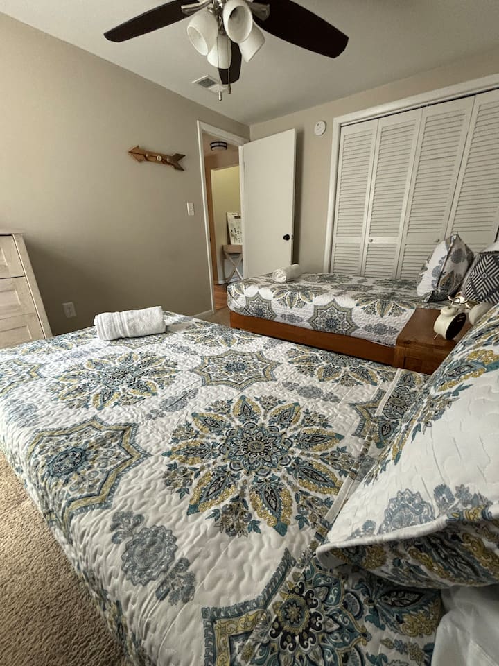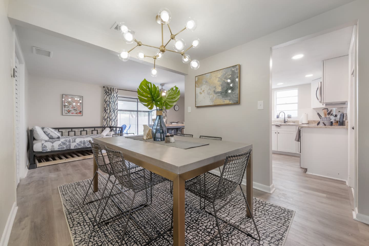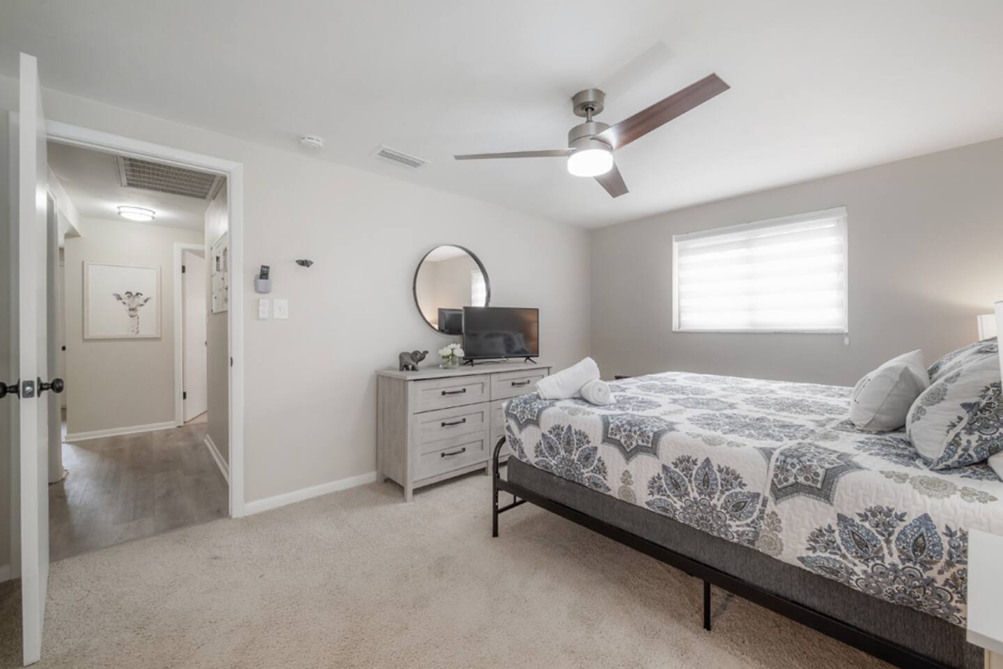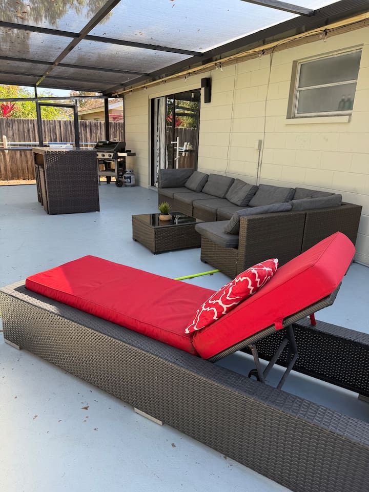 This home has it all! Recently renovated, we have created a beautifully thoughtfully decorated space for you and your guests! 6 beds total. 3 bedrooms all with real beds, there is also a daybed/sofa for additional sleeping in the living area as well as one folding bed. Tv's are located in the Living room and ALL bedrooms. The kitchen has been fully equipped for you to whip up a quick bit or a holiday feast! The pool is screened and HEATED year round! The outdoor space is huge! We have added a large sectional outdoor sofa as well as a gas grill and dining space! Please note! The patio was recently renovated to remove roof panels damaged during Hurricane Helene. It is now fully screened. Pics coming soon! Come one, come all and retreat, relax and get your zen on! This home combines modern comfort with Zen-inspired touches. 🛏 Bedding Configuration 1 King – Master Bedroom 1 Queen – Guest Bedroom 2 Twins – Guest Bedroom 1 Twin Day bed plus Memory foam folding bed – Living Room ✨ Highlights Heated pool + screened lanai w/ outdoor dining Fully stocked kitchen for family meals Smart TVs in living room + master and queen bedrooms Stylish, comfortable furnishings Walkable to ZooTampa + minutes to Downtown While there is no charge for the pool heat, there are some restrictions. Please see below. Why guests love it 👨👩👧 Families: single-level home (no stairs), fenced yard, pack ’n play, kids’ dinnerware, minutes from Busch Gardens , downtown & ZooTampa across the street! 💻 Digital Nomads: fast Wi-Fi, Ethernet, dedicated workspace, quiet neighborhood yet close to downtown. 💕 Couples: king en suite, private heated pool, modern vibe—perfect for a romantic escape or groups. Location highlights 10 min → Busch Gardens & Adventure Island 10 min → Steinbrenner Field Raymond James Stadium Amalie Arena (Now Benchmark International Arena) 10 min → USF & Moffitt Cancer Center 10 min → Downtown Tampa, Riverwalk, Armature Works 10 min → Tampa International Airport 30–40 min → Beaches & Clearwater Pickleball Courts nearby @ Rowlett Park: This park in East Tampa has eight outdoor courts with permanent nets. It is open to the public for free. Apx 3 miles